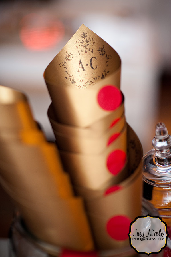 Remember back in January, when I posted some shoddy cell phone pics from Amanda & Clarks wedding? Good times. Well, thank goodness for professional photographers. Here’s a complete (and much more attractive) view of Wyatt Ink designs at the wedding, courtesy of the talented Joey Nicole: