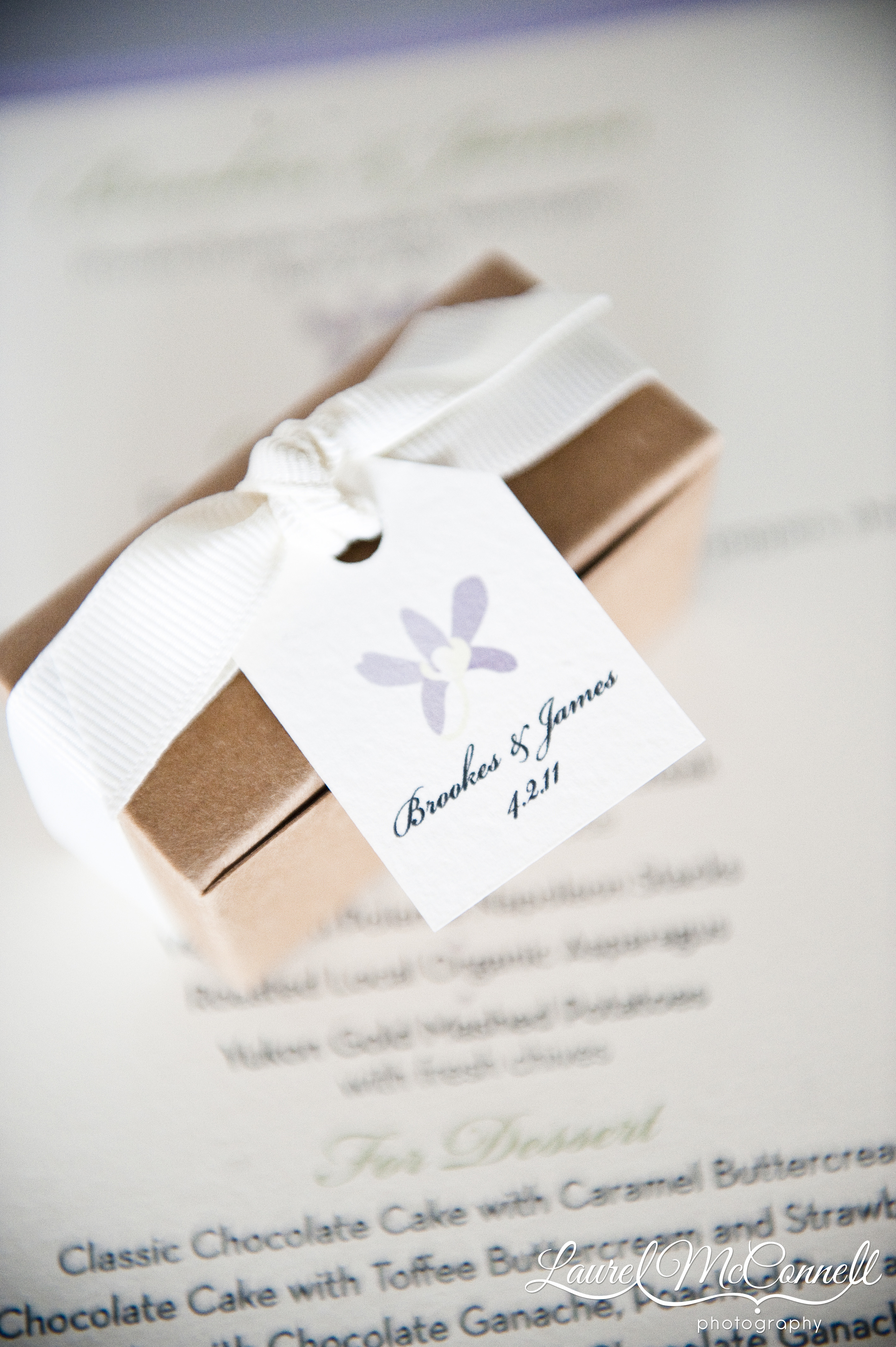 I love when I get to be involved in many aspects of a couple’s wedding design. I fell in love with Brookes and James while doing their wedding invitations, and then was lucky enough to be hired to make favor tags, escort cards, menus, and table numbers for the wedding. It was one of the most beautiful weddings ever, and I’m so excited to get to share some of the fabulous photos from Laurel McConnell Photography!